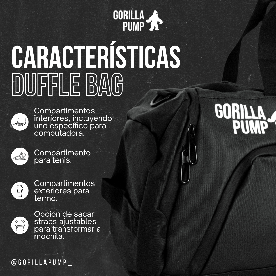 La combinación ideal de practicidad y diseño. Lleva tus accesorios de gimnasio con estilo utilizando nuestra Duffle Bag Gorilla Pump. Diseñada con materiales duraderos y funcionales, perfecta para mantener todo lo que necesitas a la mano mientras entrenas.