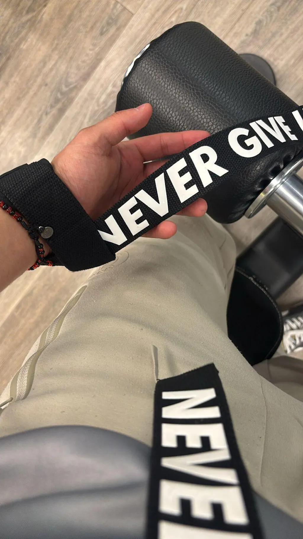 STRAPS "NEVER GIVE UP":Ayudan a asegurar un agarre firme en ejercicios pesados como el deadlift y remos, permitiendo concentrarse en la técnica y evitar la fatiga prematura de los antebrazos.