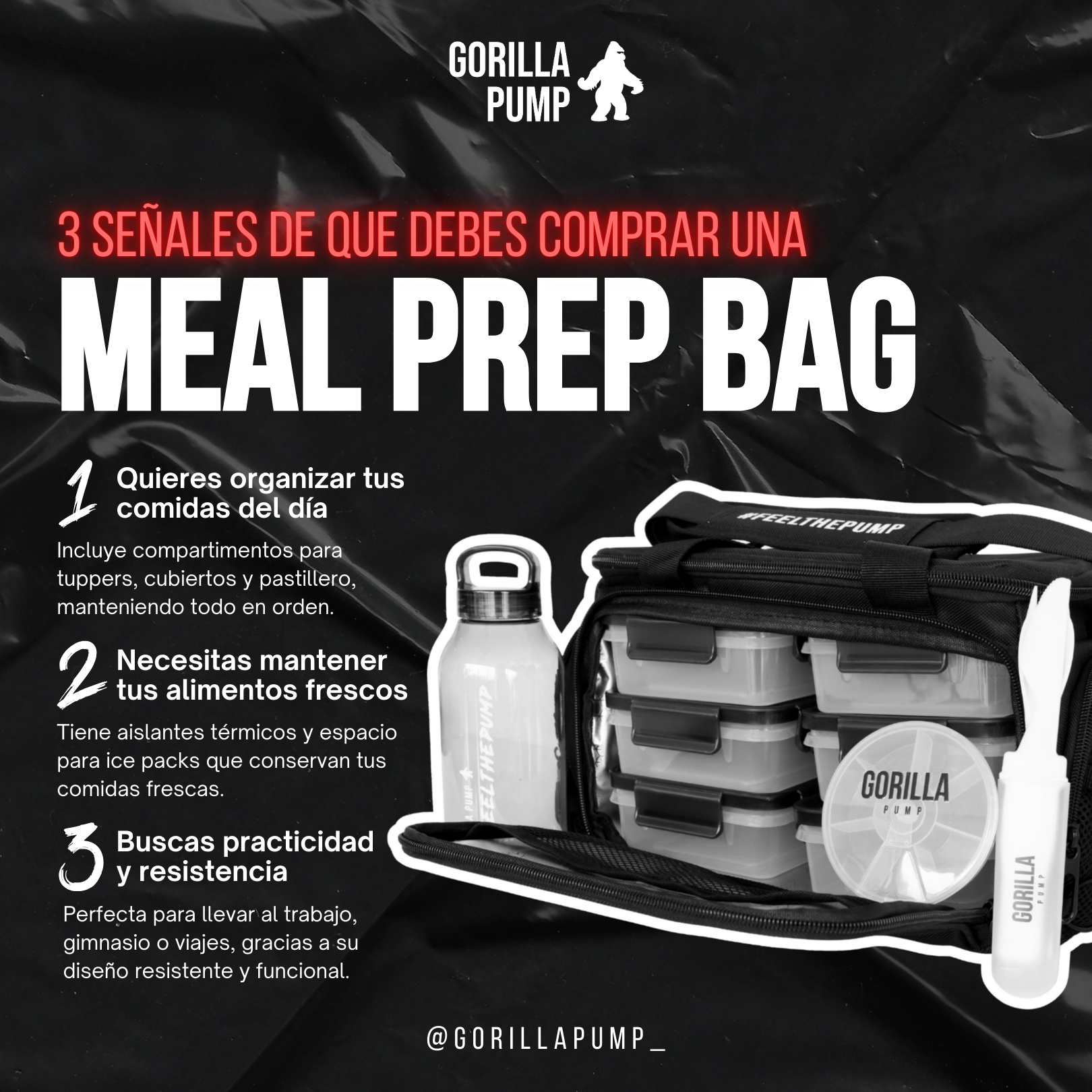 Deja de improvisar tus comidas. Lleva tu nutrición al siguiente nivel con una Meal Prep Bag diseñada para quienes sí cumplen su plan.
